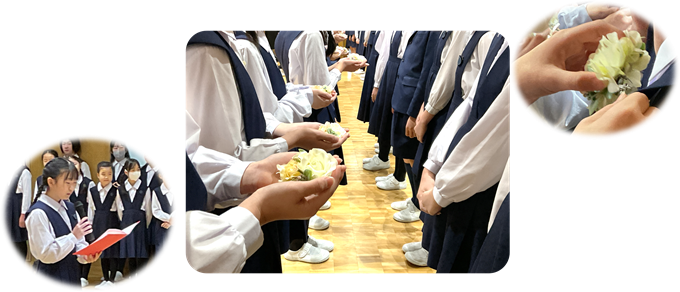 人格の形成や生きる力を養う出発点である小学校時代。マリアの心、創立者の心を受け継ぐ信愛では、朝礼・終礼時のお祈りや宗教学習を通じて、聖書の言葉を日々の指針とした心の教育を行っています。信愛独自の「お作法」の授業では所作に込められた意味や想いまでを学べ、心の根幹から健やかな子どもが育ちます。