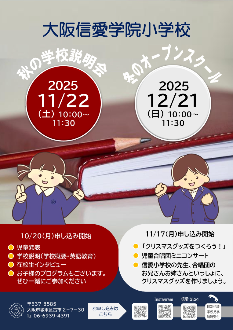 ぜひ、大阪信愛学院小学校に遊びに来てください。たくさんのご参加をお待ちしております。